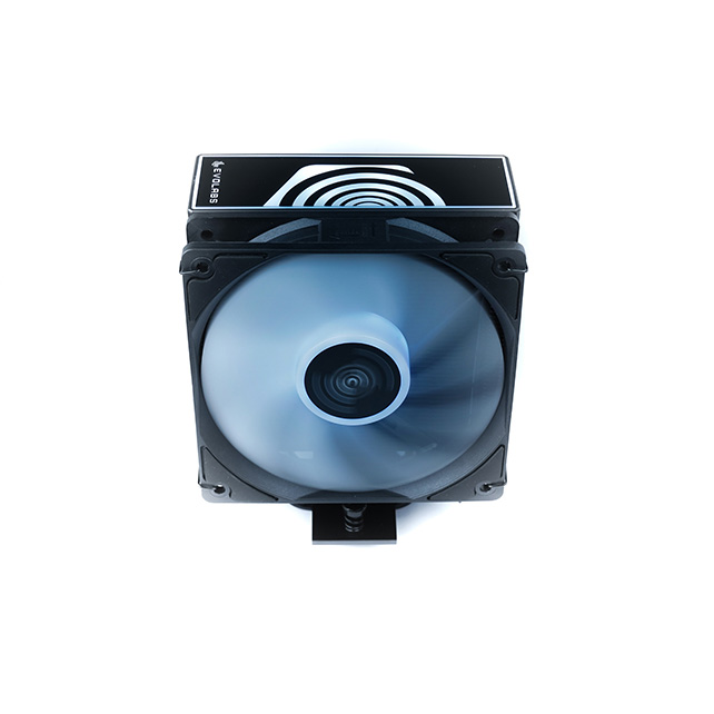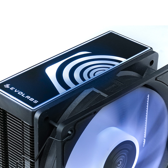 Un enfriador tipo torre de alta capacidad, diseñado para manejar hasta 180W de TDP. Cuenta con cuatro tubos de calor de cobre de contacto directo junto a un amplio conjunto de aletas de aluminio anodizado en negro. Se combina con un ventilador ARGB de 120mm con rodamiento hidráulico y una cubierta superior ARGB para ofrecer una refrigeración excepcionalmente silenciosa y un diseño visual destacado.